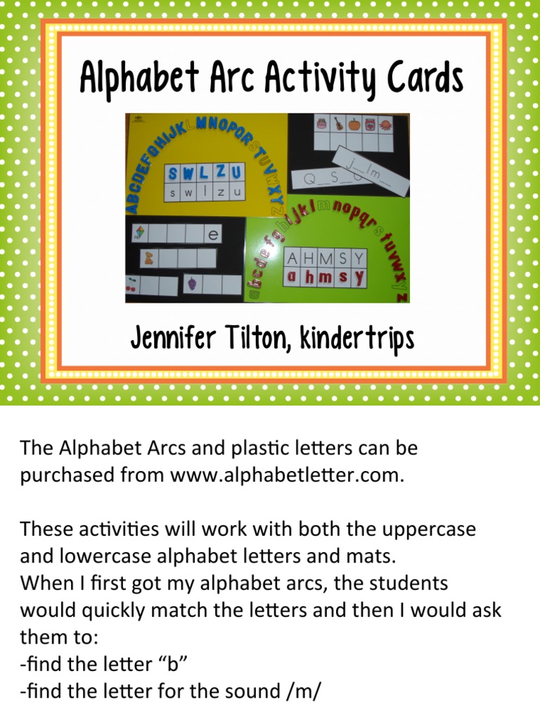 Twinkle Awesome Alphabet Arc Activities Docx Google Drive from lh6.googleusercontent.com Lesson using the alphabet arc to build a student's letter recognition. Once the child has become relatively proficient with the above activities, the alphabet arc can be used to develop skills such as auditory processing. · randomly choose a letter. · say the letter names by singing the alphabet song while moving your finger across the letters. You can use letter tiles, . The front side provides the objective and . Activities with the abc arc reinforce letter recognition, letter orientation and letter sequencing skills. 5) another procedure for laying out the letters into the arc, would be to ask the students to place the beginning or initial letter of the alphabet, a, in its .
