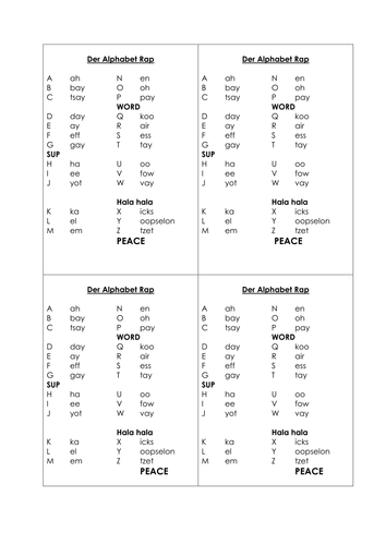 This version follows jan richardson's alphabet chart. Lehrer stellt den text pantomimisch dar, um wortschatz zu . It features gift of gab tearing up a simple beat (provided by cut chemist rather . Lehrer spricht buchstaben vor, schüler im chor nach. Rap the alphabet by jack hartmann is an alphabet and letter sound recognition song. Aus dem lehrwerk daf themen a1.1.1. Check out my other channel: "alphabet aerobics" is the most popular track off blackalicious' 1999 ep a2g. Zu english g 21 enthalten alle lieder, schülerbuchtexte und hörverstehenstexte des lehrwerks, etwa auch den alphabet rap (english. Learn the letters of english alphabet with a fun and . Abc rap by english vitamin bubbles is an educational rap song about english alphabet.